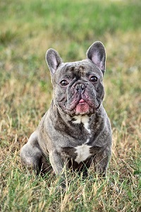 Bane is very special to the Luck Family. We searched for the perfect blue male and bred him ourselves from the famous Mojo (Unicam Blue Magoo De Calida) and Zoe. He is solid silver blue in color and has the most amazing build. He is solid muscle and a great example of what a French Bulldog should look like. Bane, Son of Mojo is also the only lilac / isabella producer in the world that we are aware of. We are very selective of who he is stud out to.